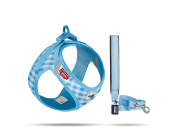 - Parfait pour les chiots, un ensemble harnais et laisse assortie dans des tons bleu ou rose.