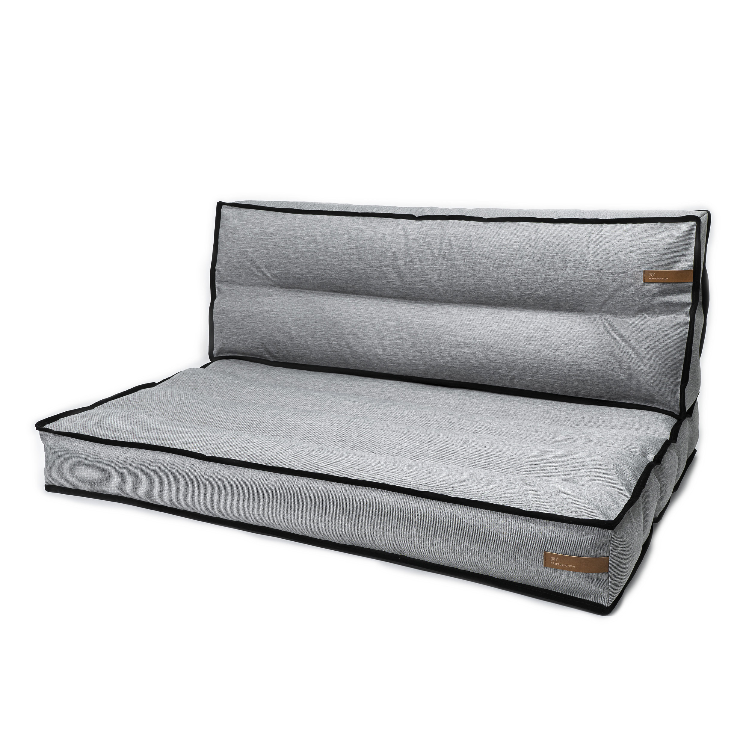 Bergamo est un canapé pour animaux de compagnie spécifiquement conçu pour l'extérieur. Il est composé de deux parties, un coussin pour le dossier et un autre pour l'assise. Grâce à son revêtement imperméable, ce modèle ne craint ni la pluie ni l'humidité. Sur votre terrasse, dans le jardin ou sur des palettes, il trouve sa place partout et offre un coin de détente confortable à votre chien ou chat.