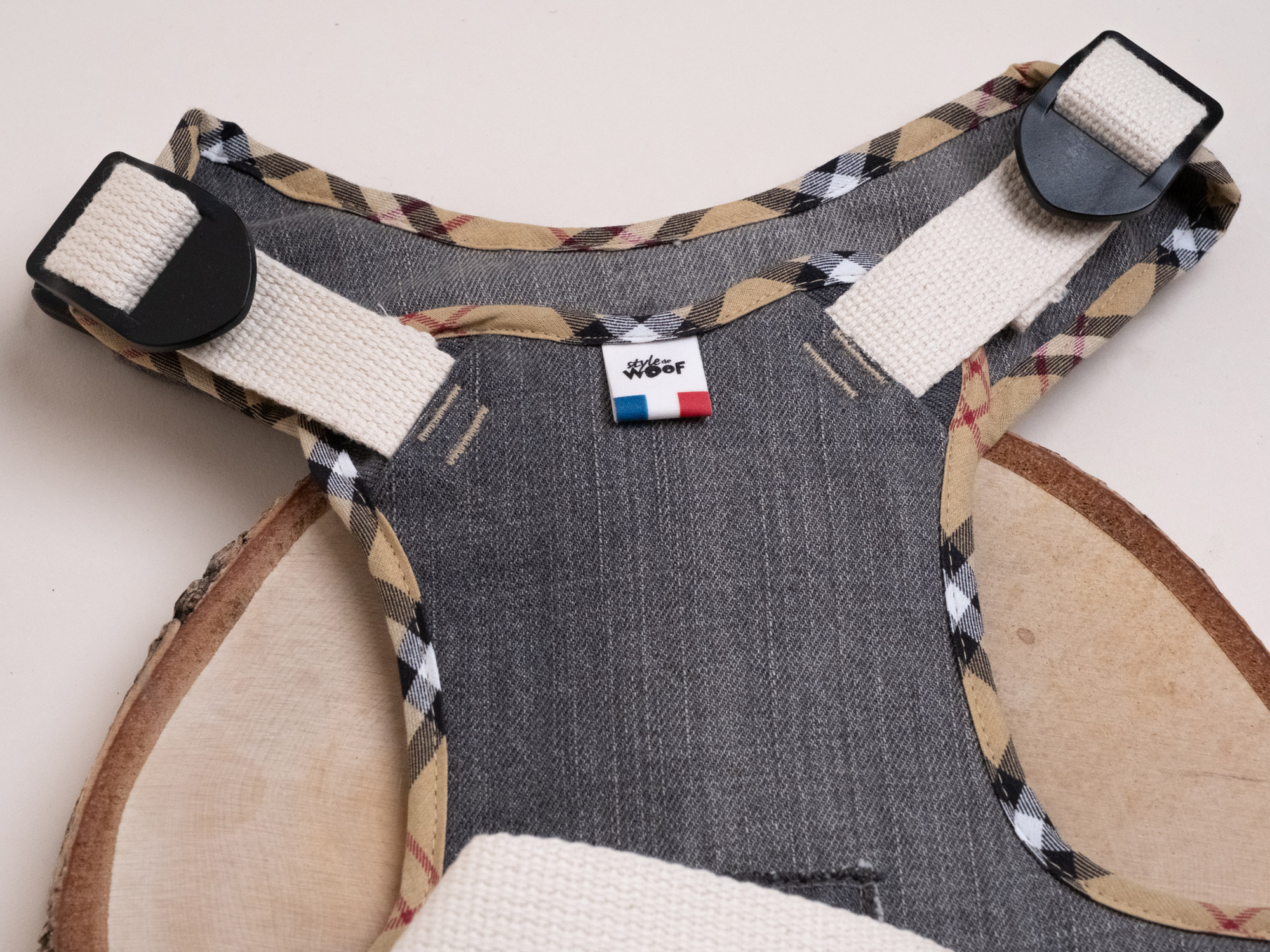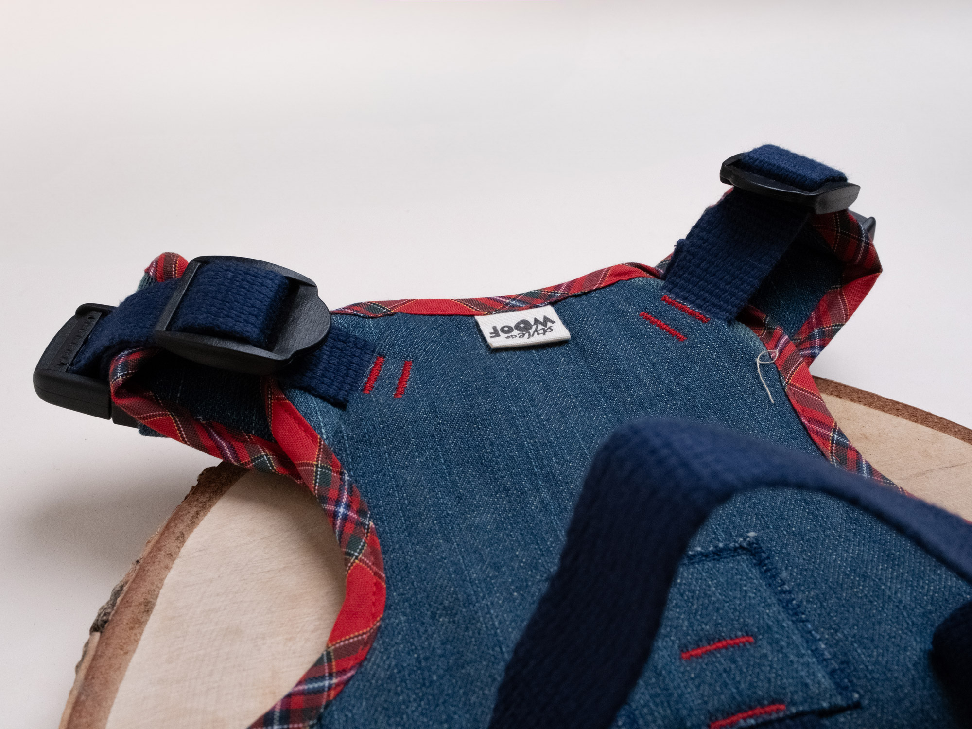 Souple et confortable : Fabriqué à partir de denim surcyclé et de doublure en tissu d’ameublement 100 % poly coton ou coton Oeko-Tex, ce harnais est doux sur la peau tout en restant résistant, même lors des promenades les plus dynamiques.
