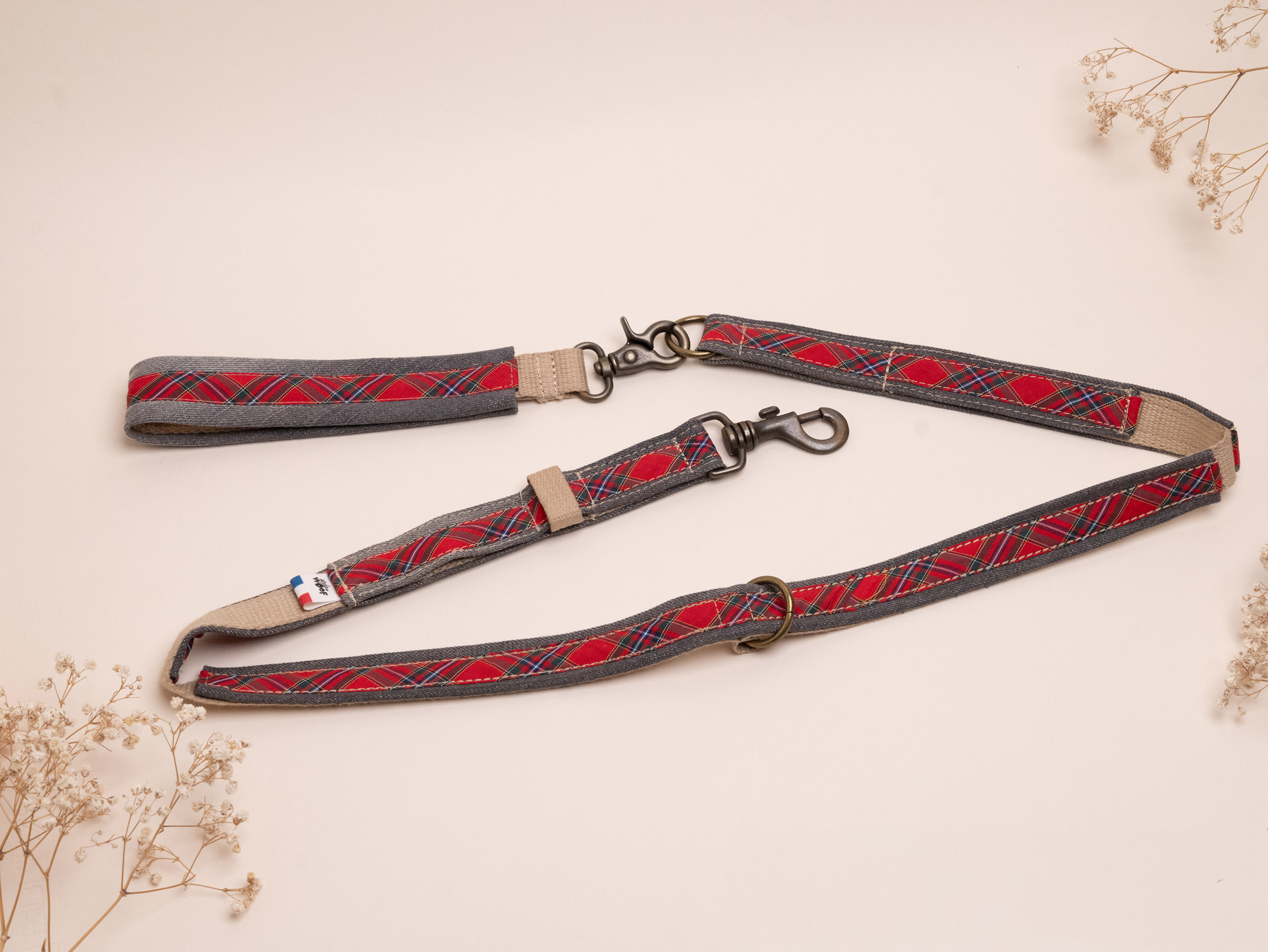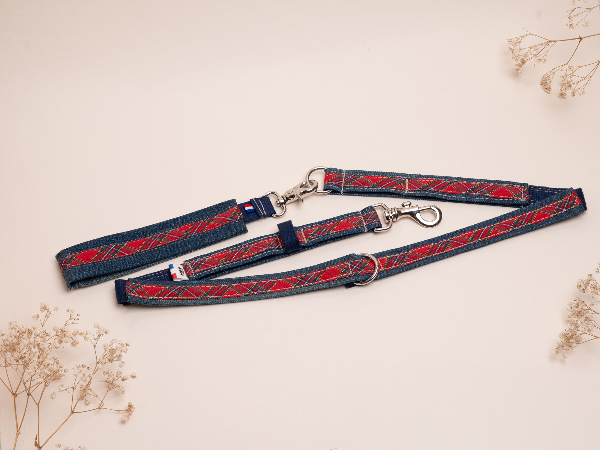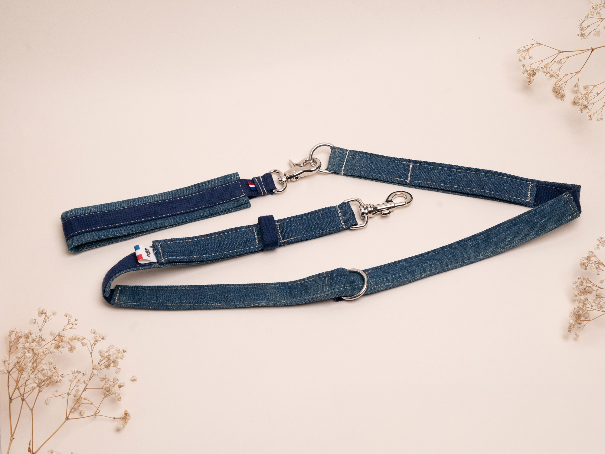 Avec cette laisse en Jean surcyclé triple position, promenez votre chien avec élégance et engagement. À la fois robuste et respectueuse de l'environnement, elle s'accorde parfaitement avec nos harnais et colliers pour offrir une promenade confortable et stylée.