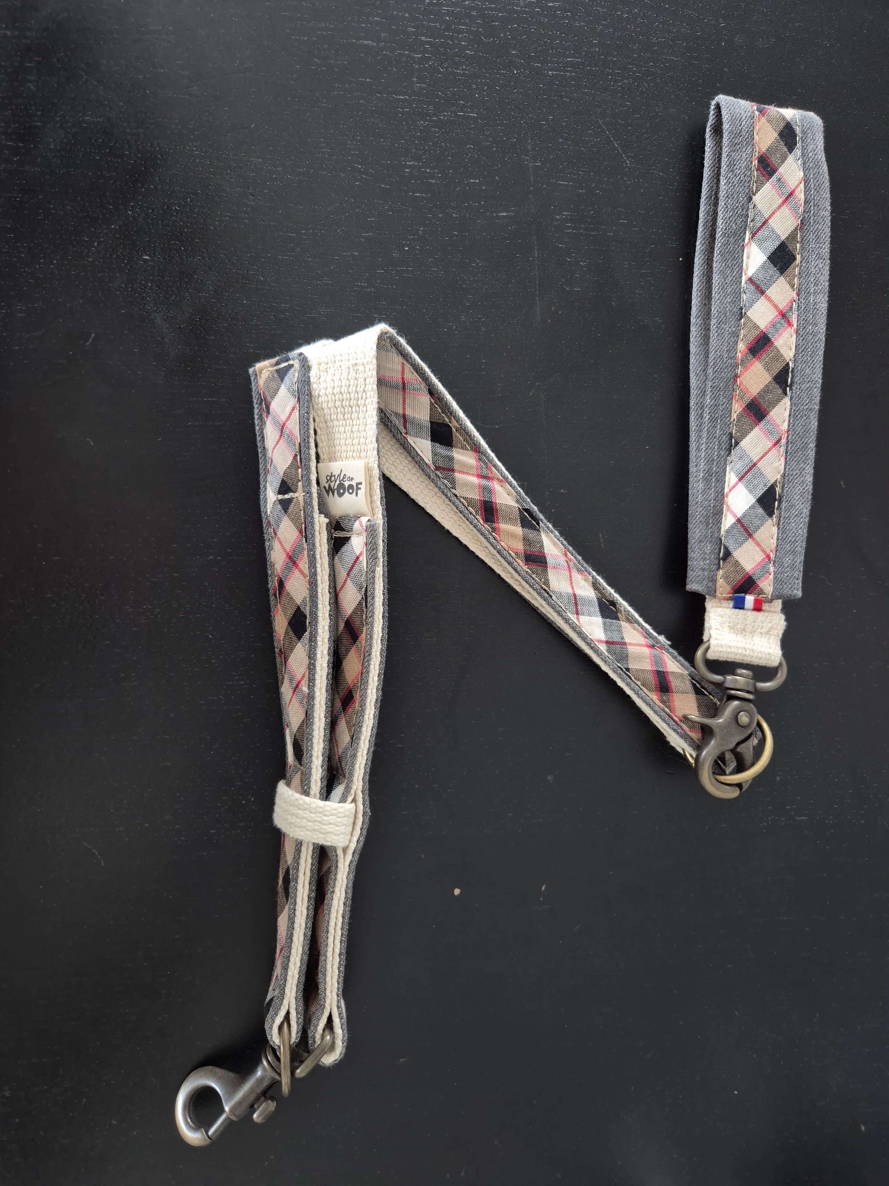 Comme tous nos produits, cette laisse est fabriquée à la main dans le Nord de la France, en utilisant des matériaux upcyclés. Chaque pièce est unique et contribue à réduire les déchets textiles tout en soutenant l'artisanat local.