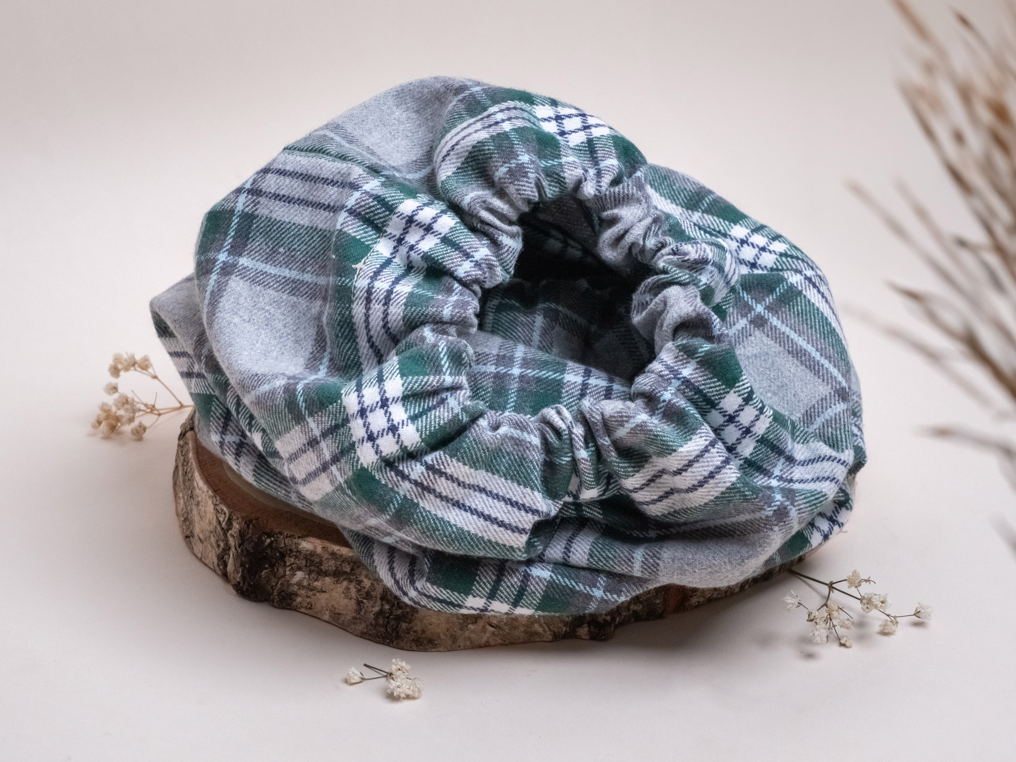 Chaque snood est cousu à la main dans nos ateliers du Nord de la France, alliant savoir-faire local et engagement écologique. Le surcyclage des tissus permet de créer des accessoires aussi uniques qu'éthiques, tout en réduisant notre empreinte environnementale.